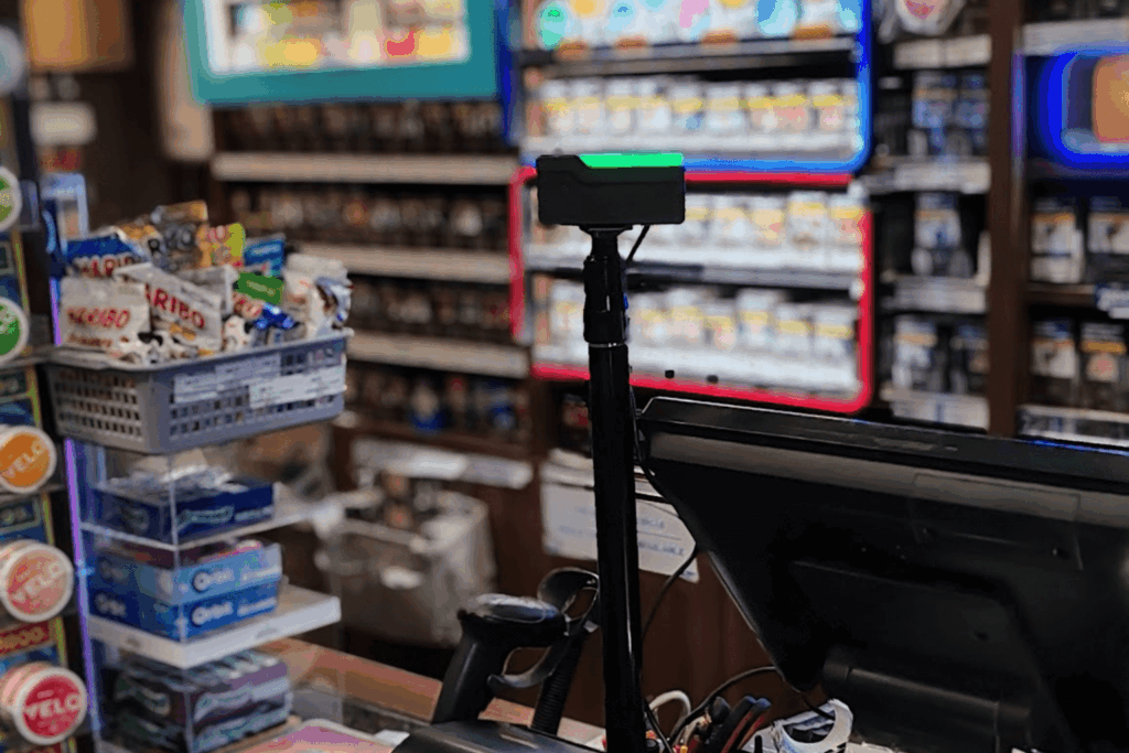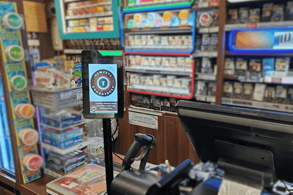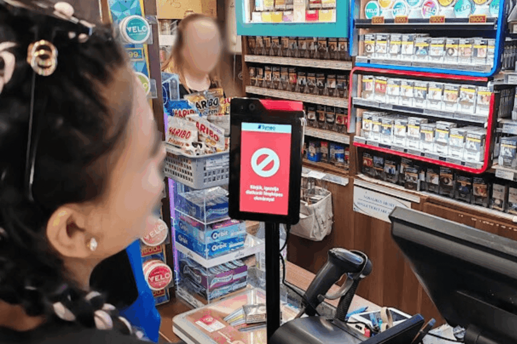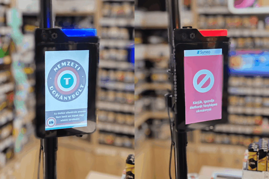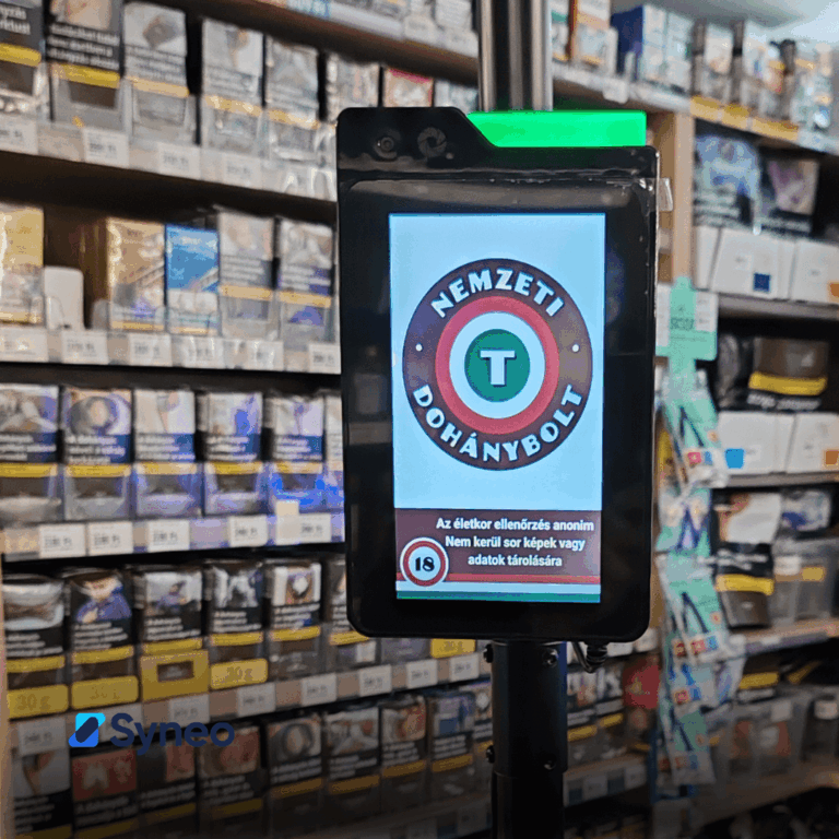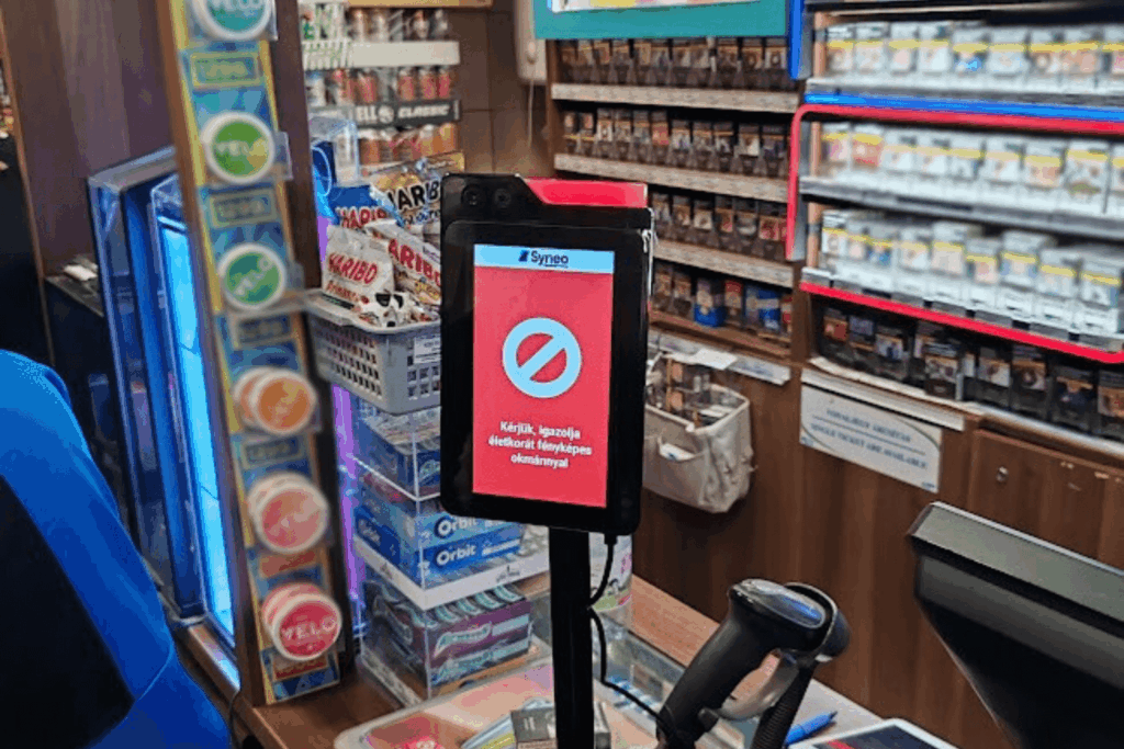 Pénztárhoz kihelyezhető életkor ellenőrző eszköz. AI-alapú életkor meghatározás arcfelismeréssel.