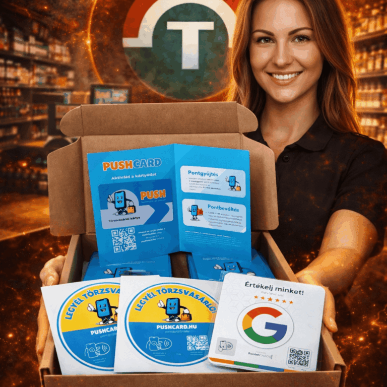 Mindent készen kapsz: plasztik törzsvásárlói kártyák, NFC+QR kódos ajtómatricák, vásárlói tájékoztató füzetek. Ezzel se kelljen foglalkoznod.