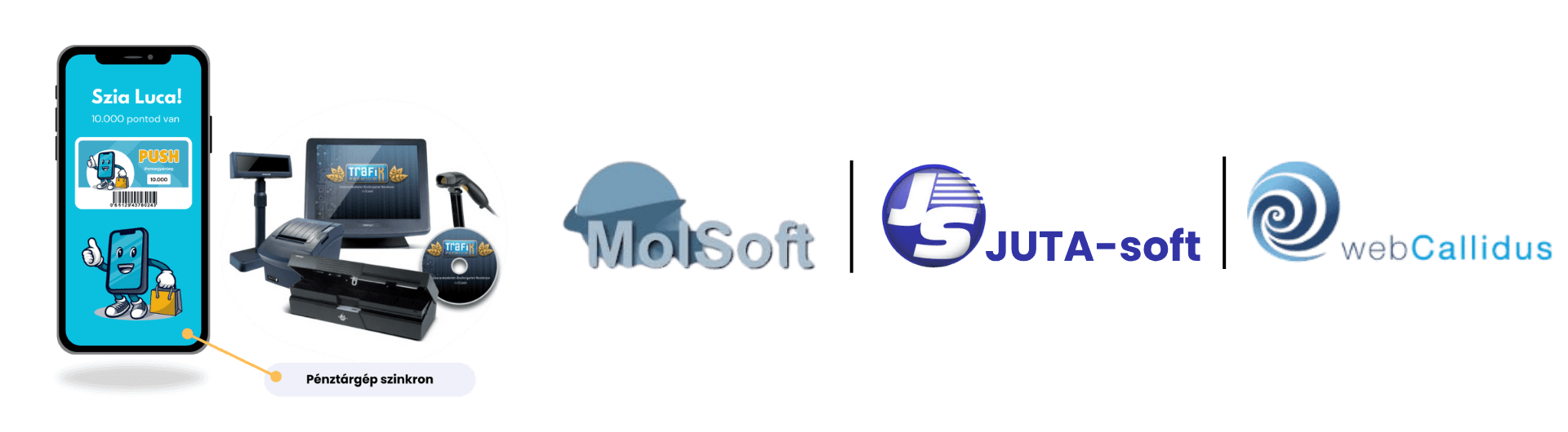 A PushCARD törzsvásárlói kártya program a meglévő – MolSoft, JUTASOFT és Webcallidus – pénztárgépedbe integrálva működik AUTOMATIKUSAN.
